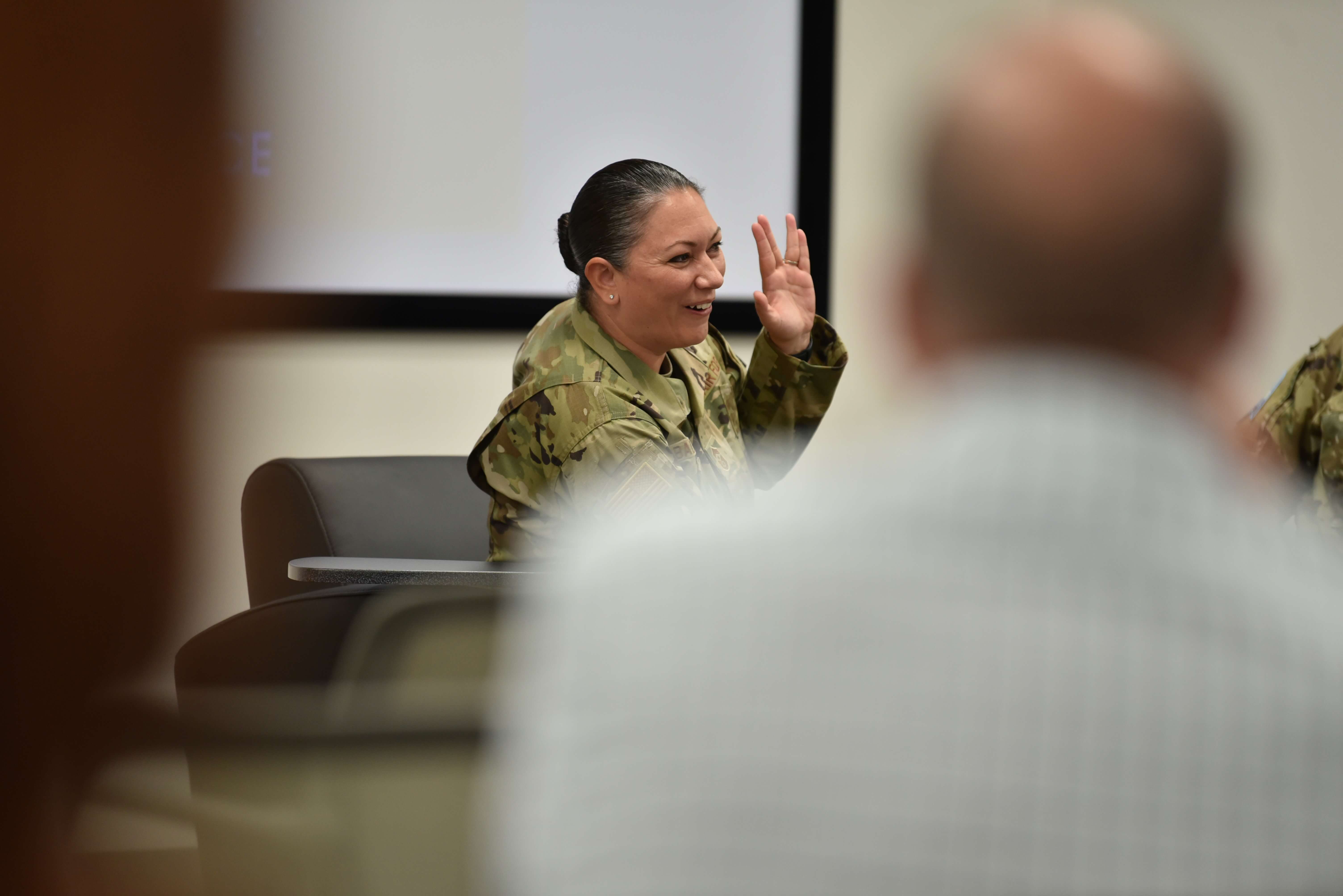 The keynote speaker for the event was Chief Master Sergeant Sevin Balkuvvar, from the U.S Air Force. Balkuvvar is the senior enlisted advisor to the basse commander at Peterson Space Force Base and the senior leadership team on all matters impacting the combat readiness, welfare, morale, proper utilization and progress of assigned personnel. Joining Chief Master Sgt. Balkuvvar on the panel were Chief Master Sgt. Charles Apodaca, U.S. Space Force, and Chief Master Sgt. Janna Glotfelty, U.S. Air Force.