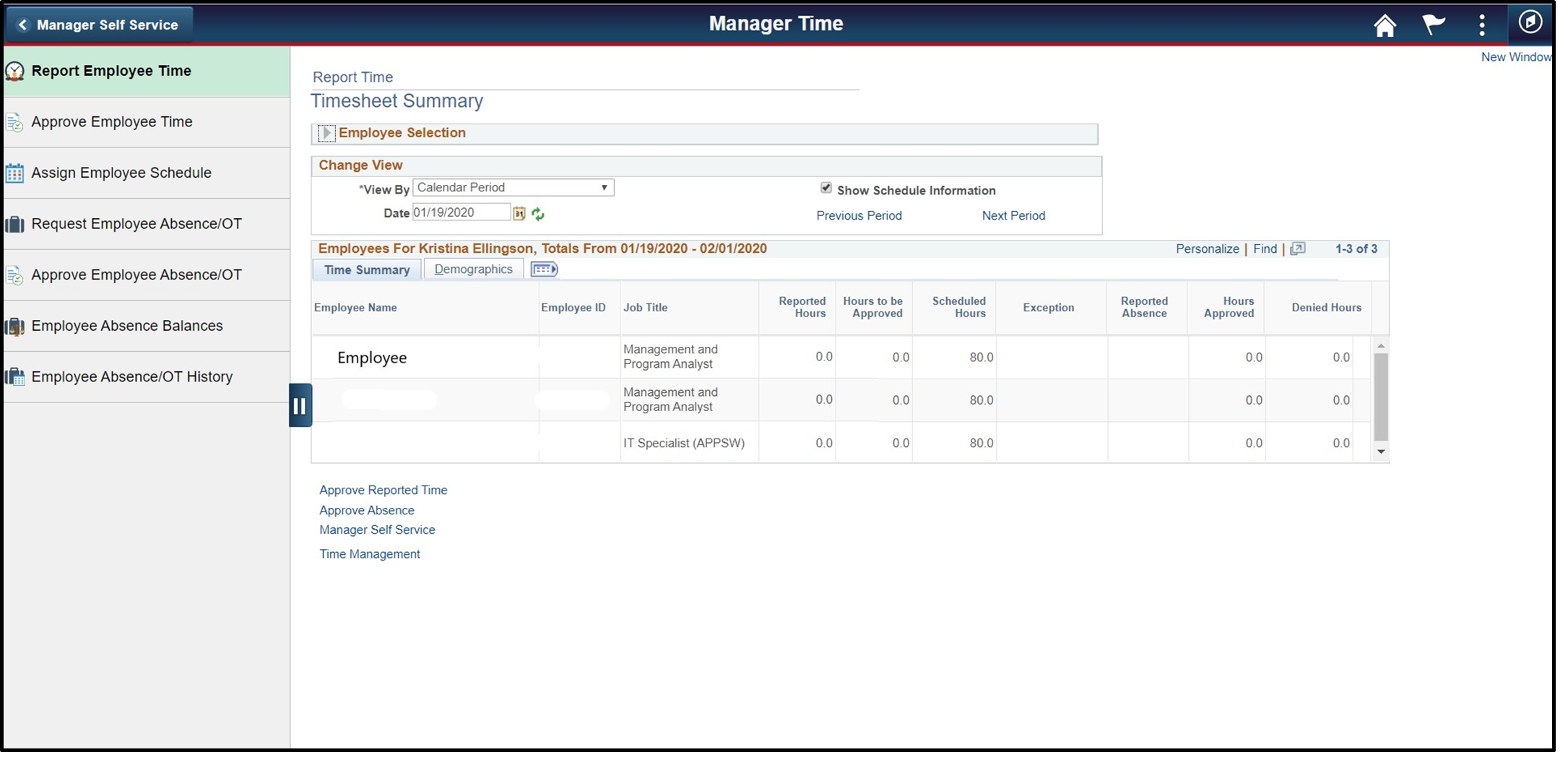 Go back to the Employee Report Time tab and select the Employee’s name on the Timesheet Summary page.