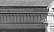 - Elaborated single-bay gable dormers with classically detailed engaged columns, gable returns, and decorative windows with latticework headers